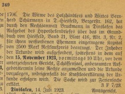 Quelle:Amtsblatt für den Regierungsbezirk Düsseldorf 1923 Öffentlicher Anzeiger Nr. 49, S. 249:http://digital.ub.uni-duesseldorf.de/ihd/periodical/pageview/7227873